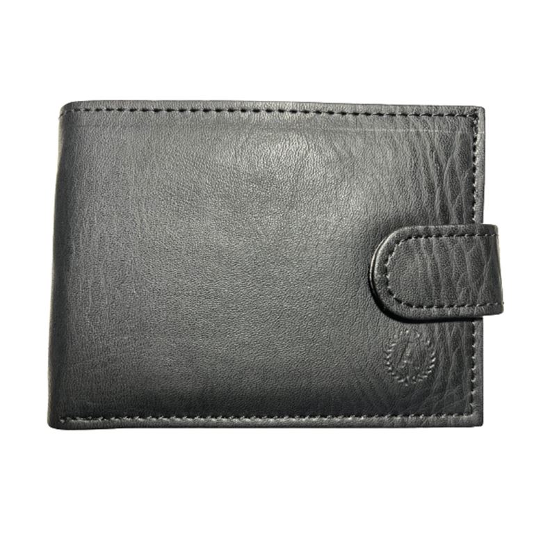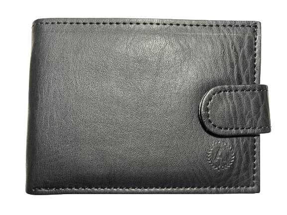 Ανδρικό πορτοφόλι με κούμπωμα ANNIE LEATHER ματ μαύρο χρώμα