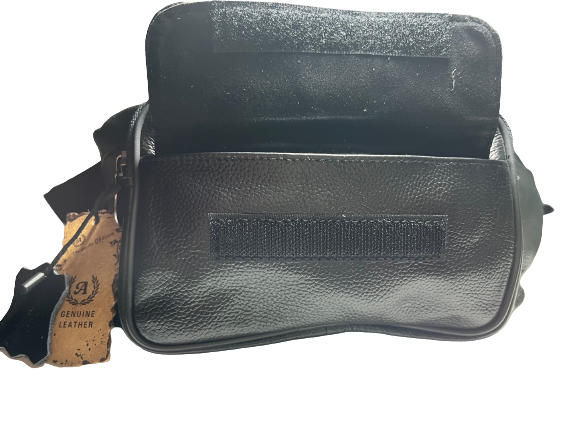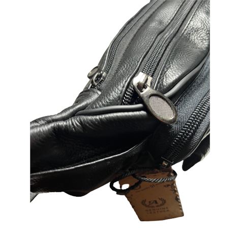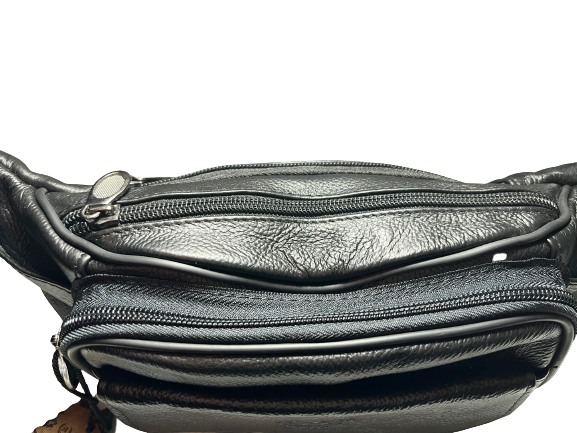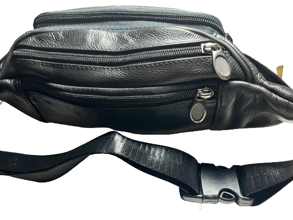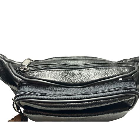 Δερμάτινο τσαντάκι μέσης χρώματος μαύρο εξαιρετικής ποιότητας και αντοχής φοδραρισμένο μέσα έξω με μεταλλικά φερμουάρ από γνήσιο δέρμα (μοσχάρι) με πολλούς εσωτερικούς χώρους και ρυθμιζόμενο ιμάντα μέσης και ενισχυμένο κλιπ κουμπώματος.