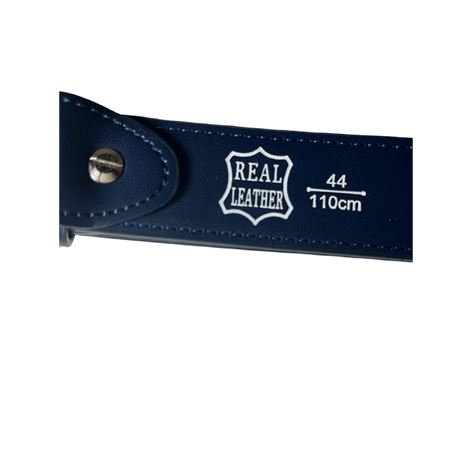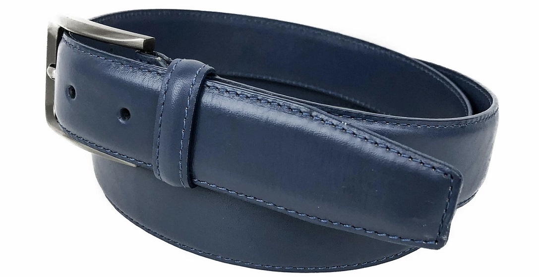 Δερμάτινη ανδρική ζώνη χρώμα μπλε 3.5cm,100% δέρμα αγελάδας μέσα-έξω προσεγμένη, με ένα εξωτερικό διακριτικό γαζί και μεταλλική αγκράφα. Μπορεί να συνδυαστεί με casual ντύσιμο αλλά και για επίσημες εκδηλώσεις, με τέλεια εφαρμογή χωρίς τσακίσεις και το χρώμα της μένει αναλλοίωτο στο χρόνο.
