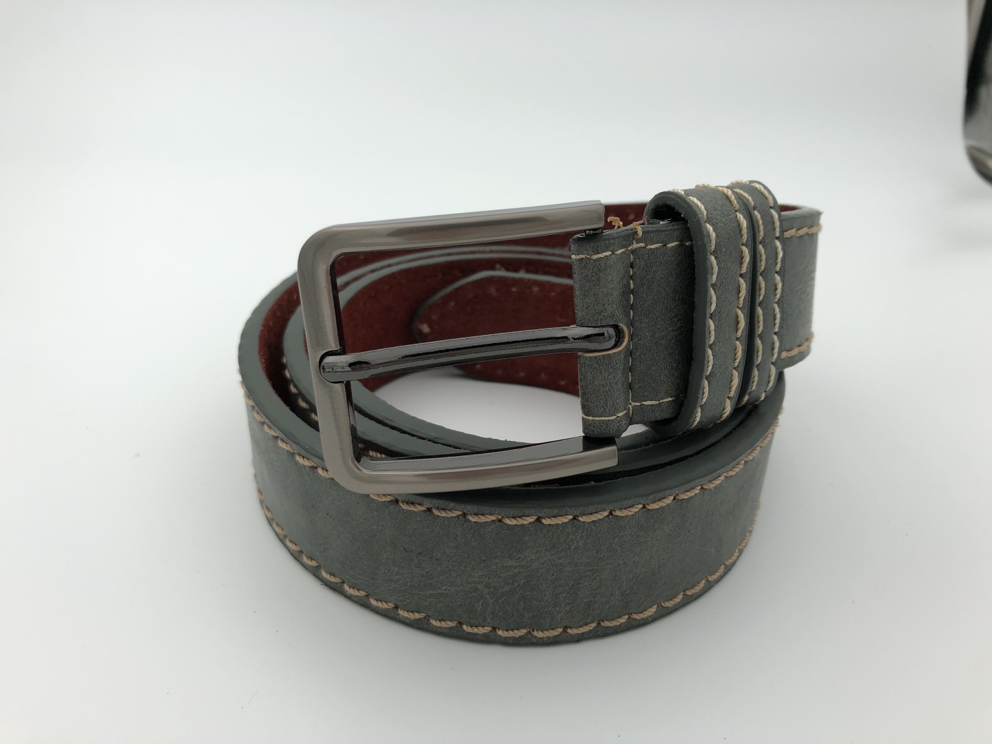 Ανδρική δερμάτινη ζώνη γκρι (4cm) εκρού γαζί