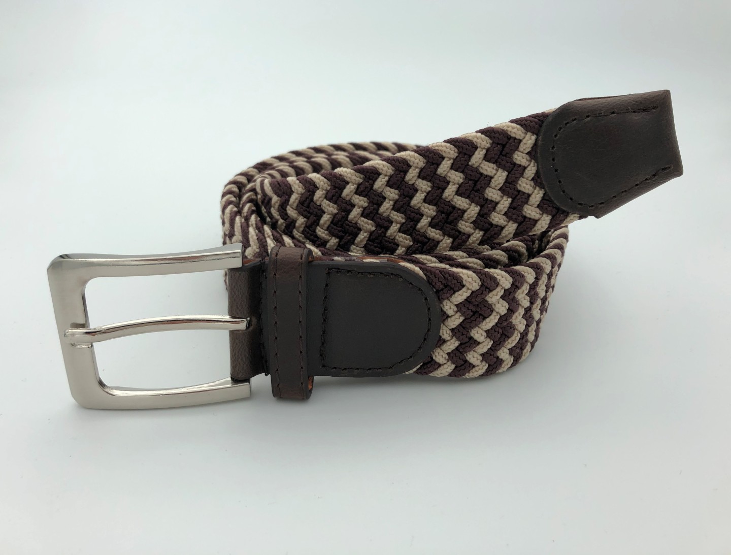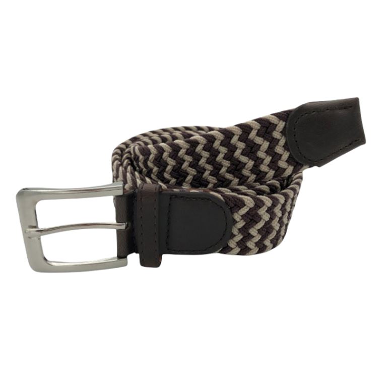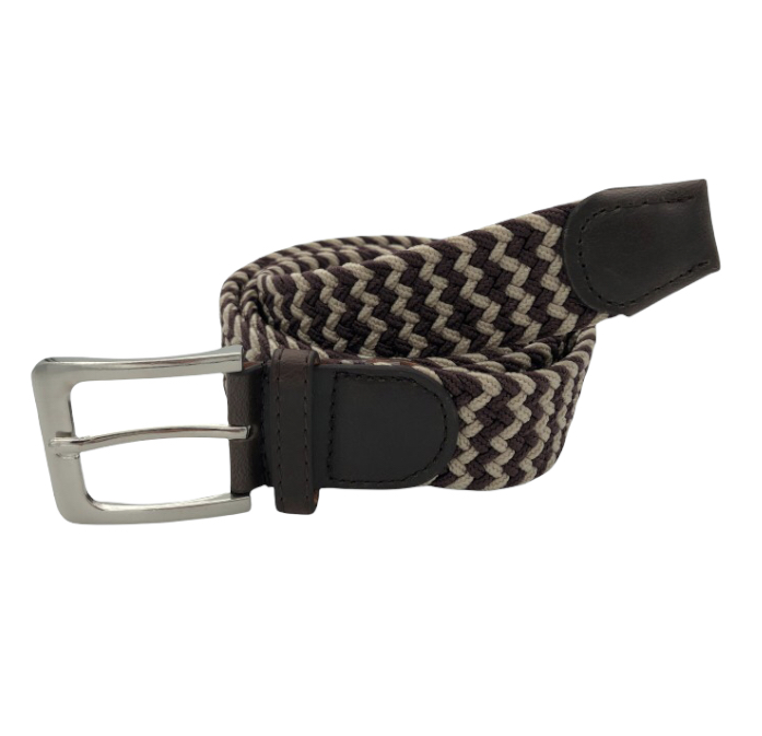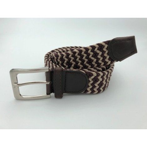 Ελαστική πλεκτή ζώνη από επιλεγμένο ύφασμα ένα απαραίτητο αξεσουάρ για εσάς.Δεν διαθέτει τρύπες και σφίγγει όσο θέλετε, με μεταλλική τετράγωνη αγκράφα και δέρμα στο κούμπωμα. Σύνθεση leather - fabric.