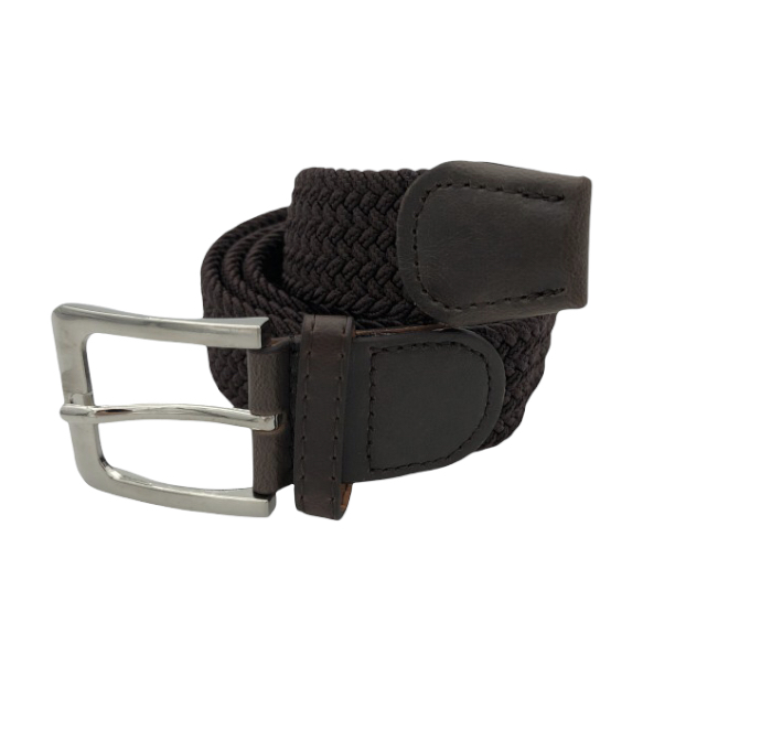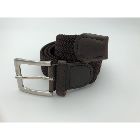 Ελαστική πλεκτή ζώνη από επιλεγμένο ύφασμα ένα απαραίτητο αξεσουάρ για εσάς.Δεν διαθέτει τρύπες και σφίγγει όσο θέλετε, με μεταλλική τετράγωνη αγκράφα και δέρμα στο κούμπωμα. Σύνθεση leather - fabric.