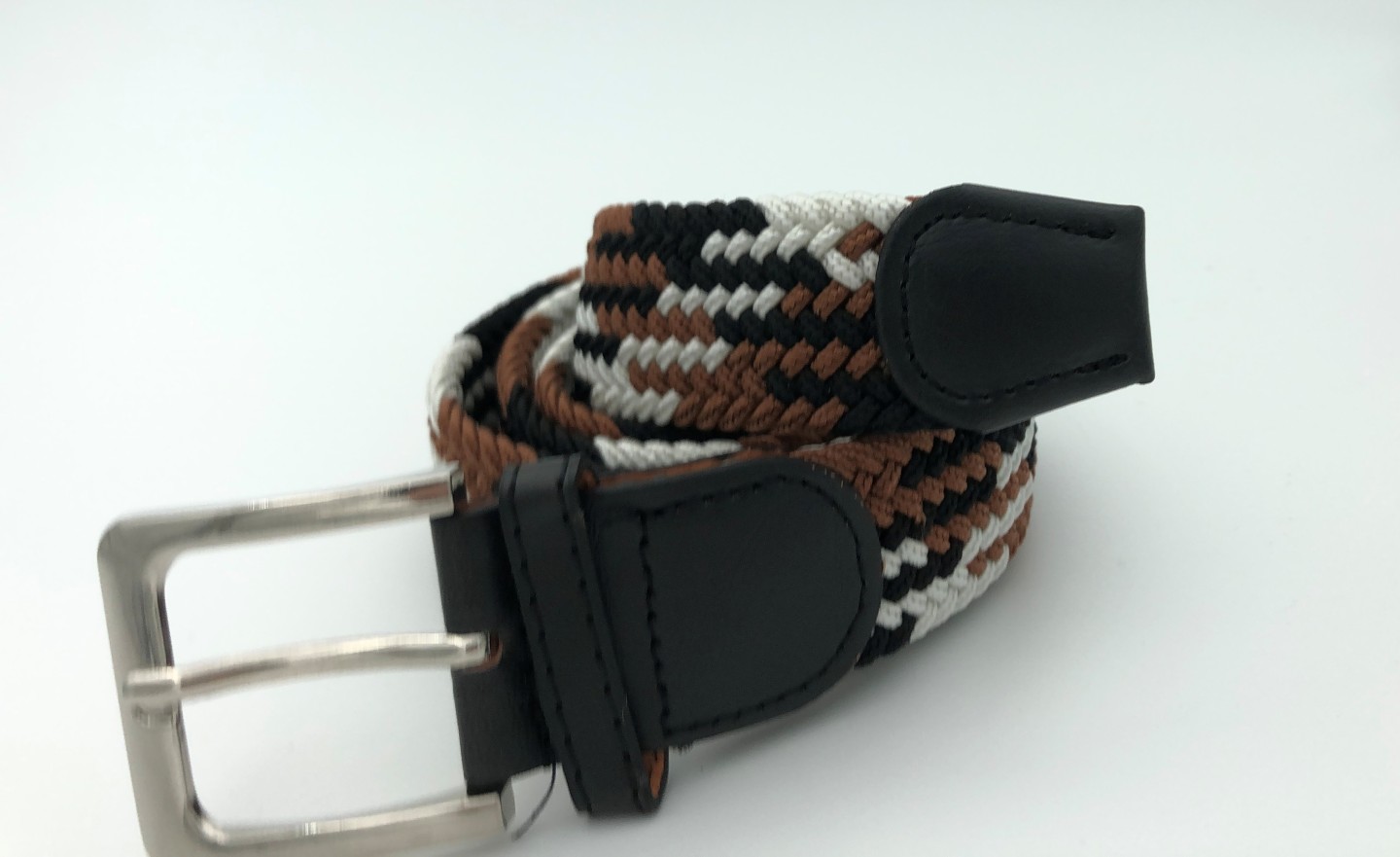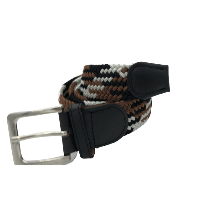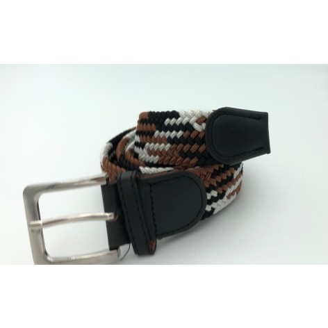 Ελαστική πλεκτή ζώνη από επιλεγμένο ύφασμα ένα απαραίτητο αξεσουάρ για εσάς.Δεν διαθέτει τρύπες και σφίγγει όσο θέλετε, με μεταλλική τετράγωνη αγκράφα και δέρμα στο κούμπωμα. Σύνθεση leather - fabric.