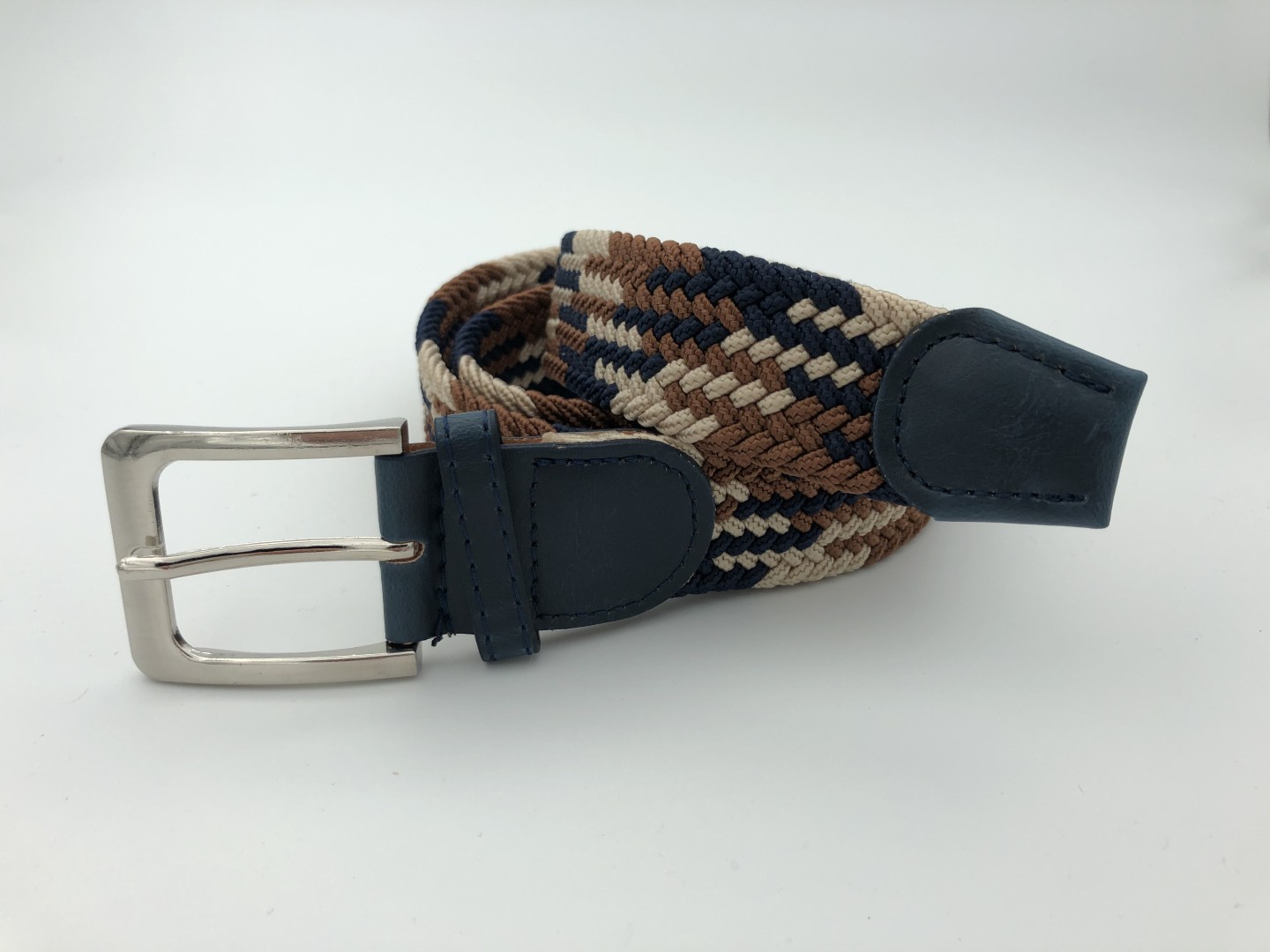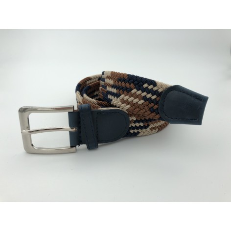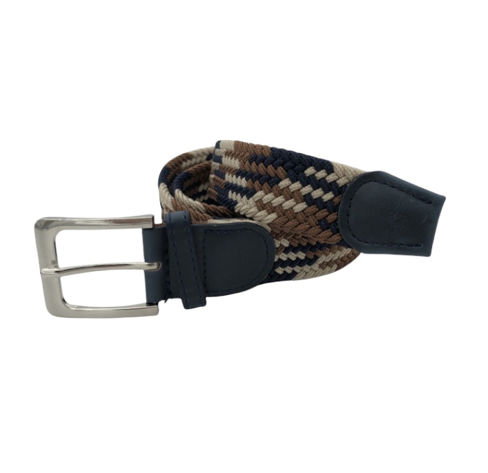 Ελαστική πλεκτή ζώνη από επιλεγμένο ύφασμα ένα απαραίτητο αξεσουάρ για εσας.Δεν διαθέτει τρύπες και σφίγγει όσο θέλετε, με μεταλλική τετράγωνη αγκράφα και δέρμα στο κούμπωμα. Σύνθεση leather - fabric.