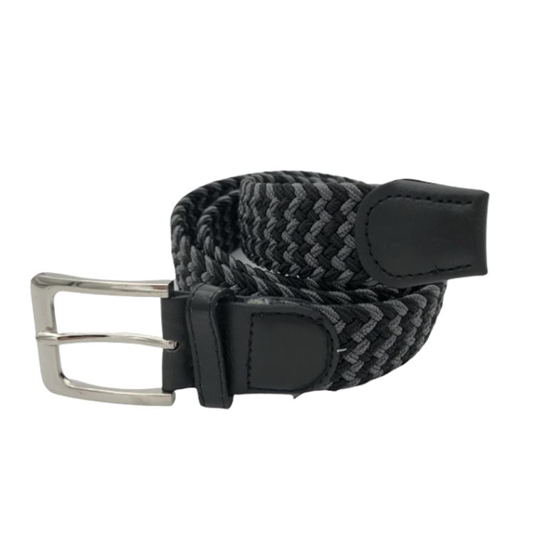 Ελαστική πλεκτή ζώνη από επιλεγμένο ύφασμα ένα απαραίτητο αξεσουάρ για εσας.Δεν διαθέτει τρύπες και σφίγγει όσο θέλετε, με μεταλλική τετράγωνη αγκράφα και δέρμα στο κούμπωμα. Σύνθεση leather - fabric.
