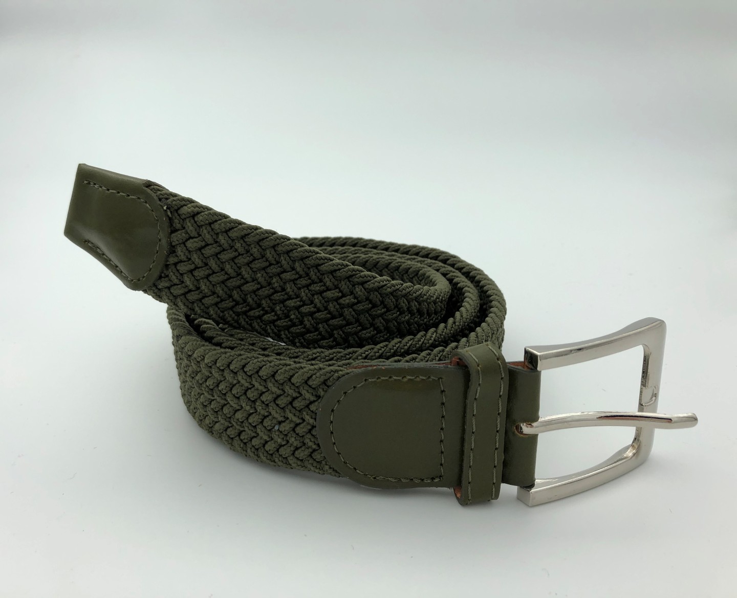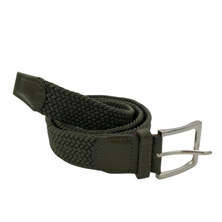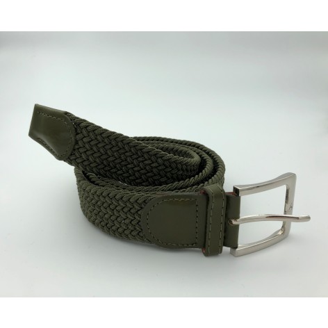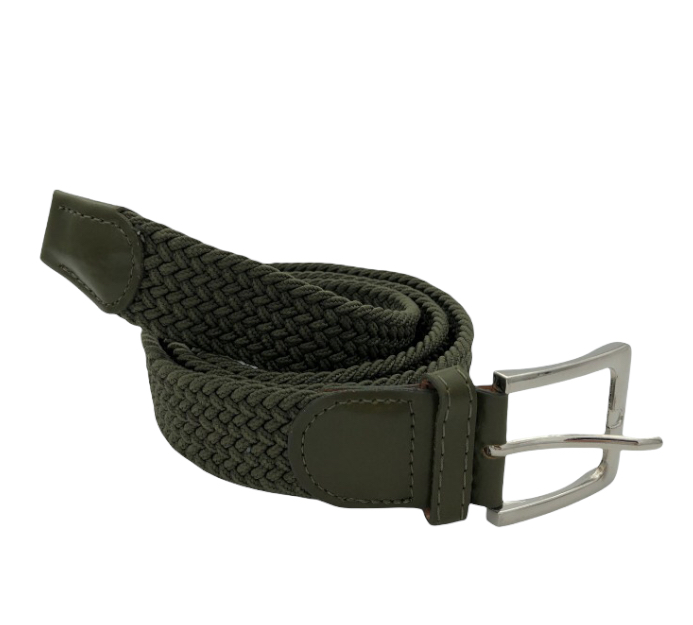 Ελαστική πλεκτή ζώνη από επιλεγμένο ύφασμα ένα απαραίτητο αξεσουάρ για εσας.Δεν διαθέτει τρύπες και σφίγγει όσο θέλετε, με μεταλλική τετράγωνη αγκράφα και δέρμα στο κούμπωμα. Σύνθεση leather - fabric.