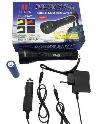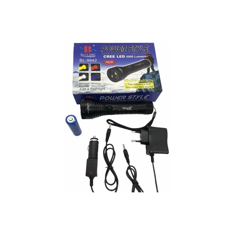 Επαναφορτιζόμενος φακός με 4 διαφορετικά χρώματα που αλλάζει εύκολα περιστρέφοντας την κεφαλή σε κόκκινο-πράσινο-μπλε-λευκό. Ο φακός χρησιμοποιεί ένα πολύ ιδιαίτερο LED CHIP της CREE (Made in USA) κορυφαίας ποιότητας με ελάχιστη κατανάλωση μπαταρίας. Ο κορμός του είναι κατασκευασμένος από αεροναυπηγικό αλουμίνιο υψηλής ποιότητας. Ο φακός είναι αδιάβροχος δεν κάνει για κατάδυση. Έχει 3 προγράμματα High-Low-Flash.Μπορεί να χρησιμοποιηθεί για πεζοπορία, στο camping,για σινιάλο μεταξύ παικτών. Στην συσκευασία περιέχεται φορτιστής σπιτιού 220V,φορτιστής αυτοκινήτου,eco pack για να λειτουργήσει με αλκαλικές μπαταρίες.