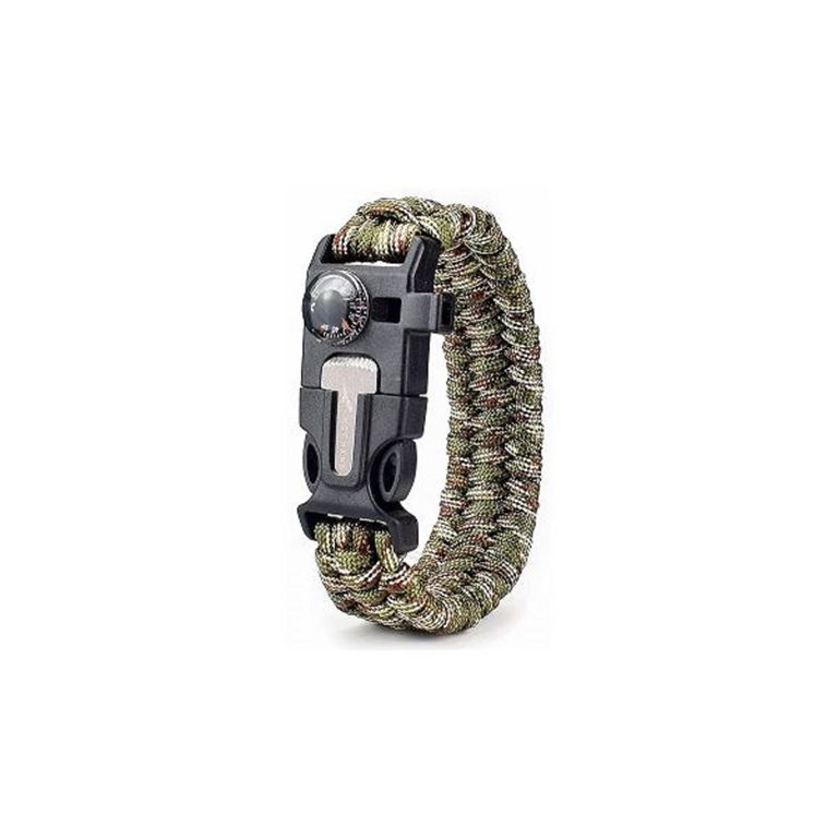 Το βραχιόλι επιβίωσης είναι η λεγόμενη αρτάνη αλεξίπτωτου.Ένα λεπτό με τεράστια αντοχή σχοινί και εκτός από τις extreme καταστάσεις που μπορεί να το χρησιμοποιήσετε είναι ένα αξεσουάρ που θα χαίρεστε να φοράτε συνέχεια στον καρπό σας.Αυτα που σας προσφέρει είναι πυξίδα ακριβείας, τσακμακόπετρα που όταν έρθει σε επαφή με το κοπίδι πετάει σπίθες και αμέσως ανάβει φωτιά.Το mini αιχμηρό κοπίδι σας βοηθάει να κόψετε σχοινί,ύφασμα,πετονιά κλπ.Η σφυρίχτρα είναι σωτήρια αν αποπροσανατολιστείται καλώντας με αυτή σε βοήθεια,διαθέτει ανοιχτηρί για μπουκάλια.Το PARACORD έχει διάσταση 3,5 μέτρα και η αντοχή του το κάνει να συγκρατήσει 250kg.