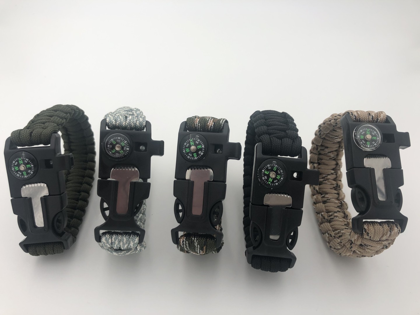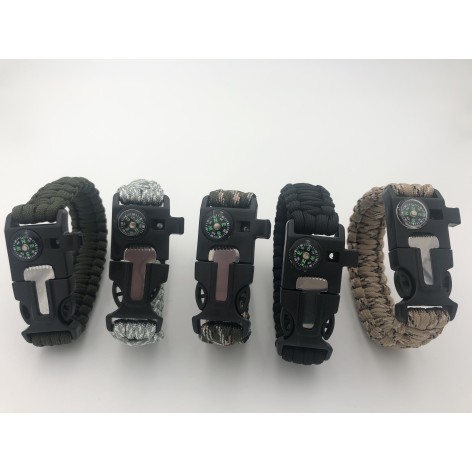 Το βραχιόλι επιβίωσης είναι η λεγόμενη αρτάνη αλεξίπτωτου.Ένα λεπτό με τεράστια αντοχή σχοινί και εκτός από τις extreme καταστάσεις που μπορεί να το χρησιμοποιήσετε είναι ένα αξεσουάρ που θα χαίρεστε να φοράτε συνέχεια στον καρπό σας.Αυτα που σας προσφέρει είναι πυξίδα ακριβείας, τσακμακόπετρα που όταν έρθει σε επαφή με το κοπίδι πετάει σπίθες και αμέσως ανάβει φωτιά.Το mini αιχμηρό κοπίδι σας βοηθάει να κόψετε σχοινί,ύφασμα,πετονιά κλπ.Η σφυρίχτρα είναι σωτήρια αν αποπροσανατολιστείται καλώντας με αυτή σε βοήθεια,διαθέτει ανοιχτηρί για μπουκάλια.Το PARACORD έχει διάσταση 3,5 μέτρα και η αντοχή του το κάνει να συγκρατήσει 250kg.