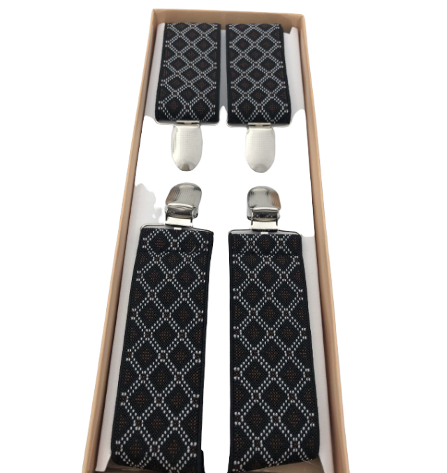 Τιράντες ανδρικές ελαστικές χρώμα μαύρο με σχέδια 3.5cm με ρυθμιζόμενο μήκος ελαστικού