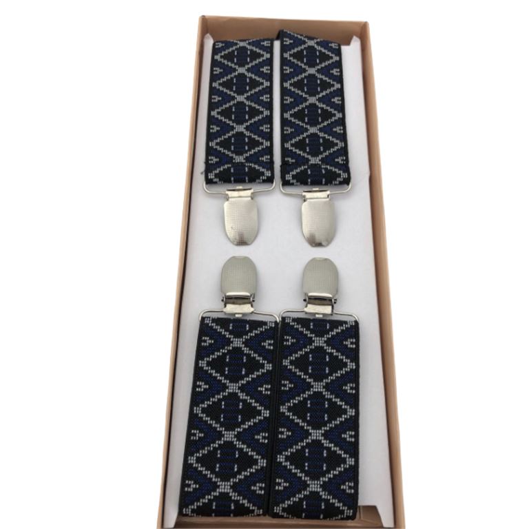 Τιράντες ανδρικές ελαστικές χρώμα μπλε με σχέδια 3.5cm με ρυθμιζόμενο μήκος ελαστικού