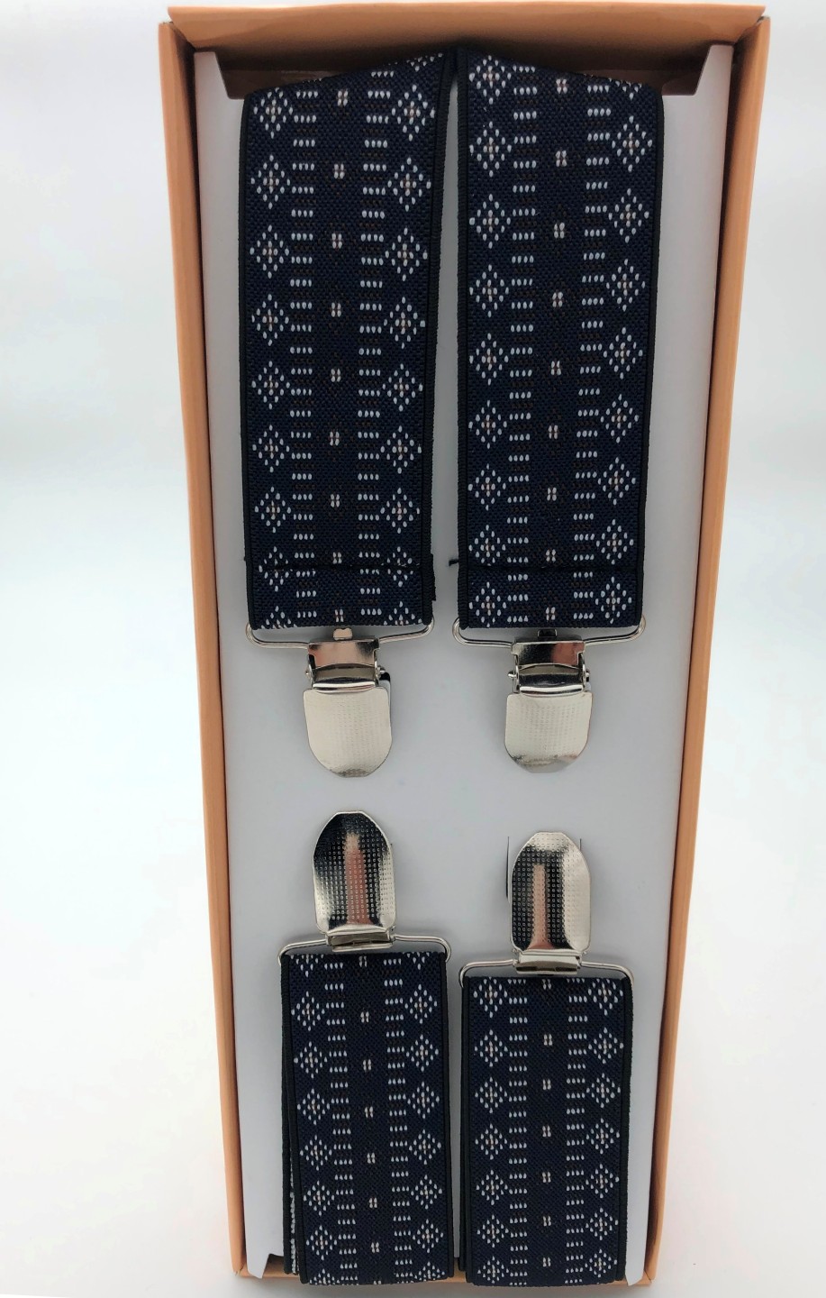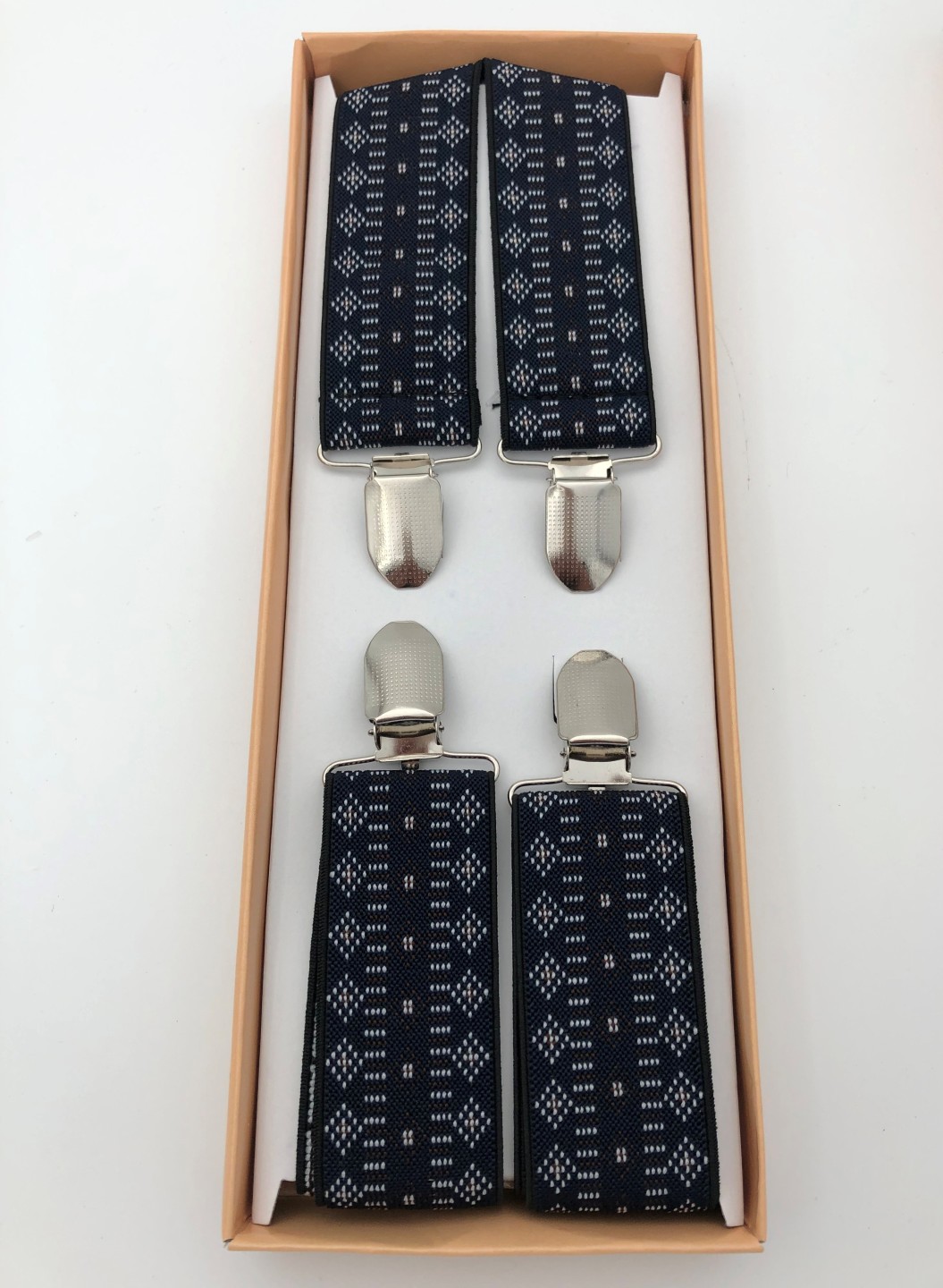 Ανδρική ελαστική τιράντα εμπριμέ πολύ καλής ποιότητος ελαστικό ύφασμα με ρυθμιζόμενα μεταλλικά μέρη και κουμπώματα σε διάφορους σχεδιασμούς για να είναι άνετα,να προσαρμόζονται τέλεια στο σώμα σας χωρίς να σας ενοχλούν και να δινούν ένα επιπλέον τόνο πινελιάς τονίζοντας την ιδιαίτερη εμφάνιση σας.Το αξεσουάρ απευθύνεται σε άντρες και γυναίκες.Yλικά κατασκευής  20% Πολυουρεθάνη, 20% μέταλλο, 60% ελαστικό συνθετικό ύφασμα.