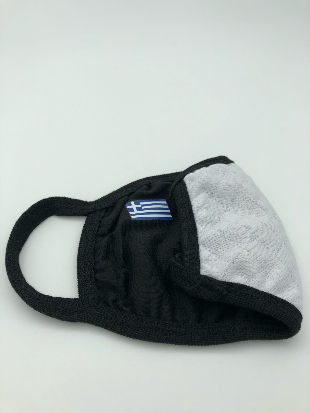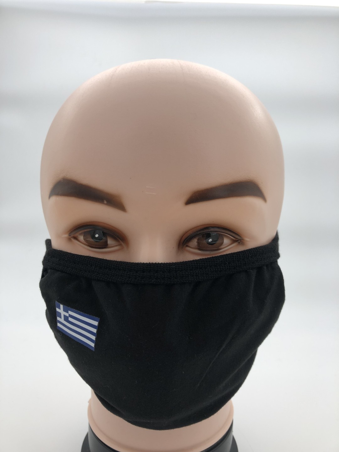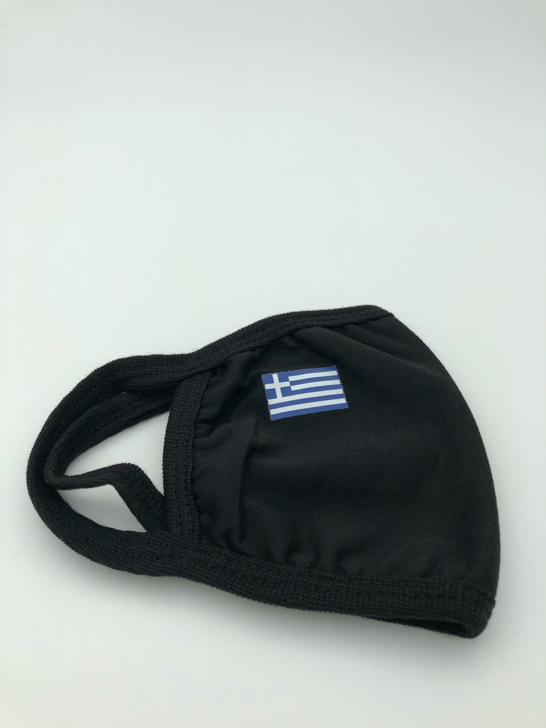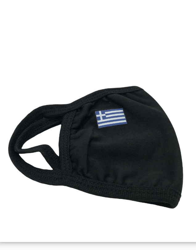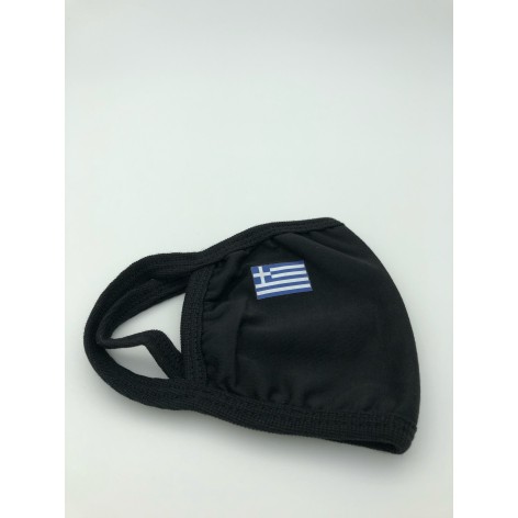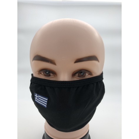 Υφασμάτινη μάσκα σε μαύρο χρώμα πλενόμενη πολύ μαλακιά με οικολογική βαμβακερή επένδυση πολλαπλών χρήσεων με την ελληνική σημαία.Πολύ καλής ποιότητος (Ελάχιστη παραγγελία 10 τεμάχια).