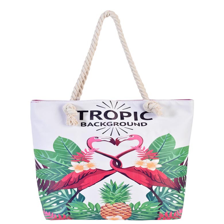 Γυναικεία τσάντα θαλάσσης τεχνόδερμα πολύχρωμη με σχέδιο Φλαμίνγκο