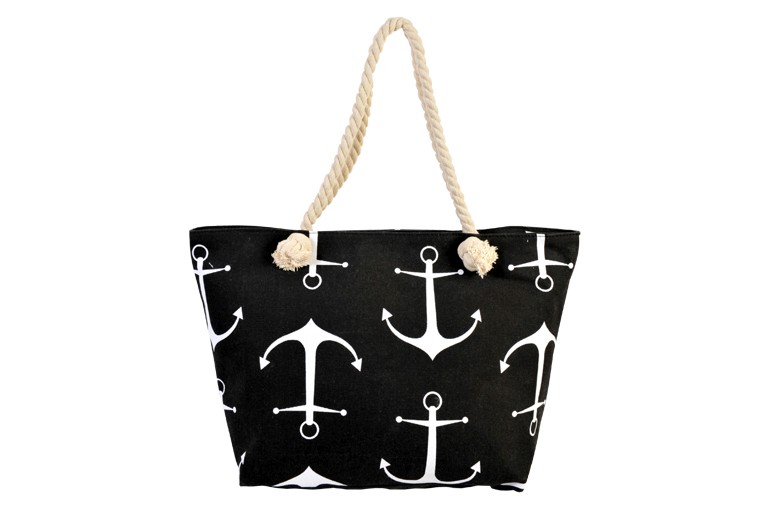 Γυναικεία τσάντα θαλάσσης canvas μαύρη με σχέδιο άγκυρες