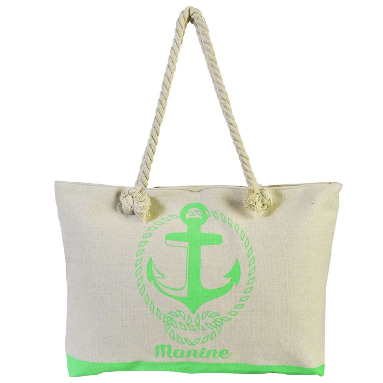 Γυναικεία τσάντα θαλάσσης canvas εκρού με σχέδιο πράσινη άγκυρα
