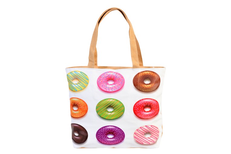Γυναικεία τσάντα θαλάσσης υφασμάτινη πολύχρωμη με σχέδιο donuts