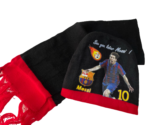 Σετ σκούφος κασκόλ με θέμα Messi (μαύρο)