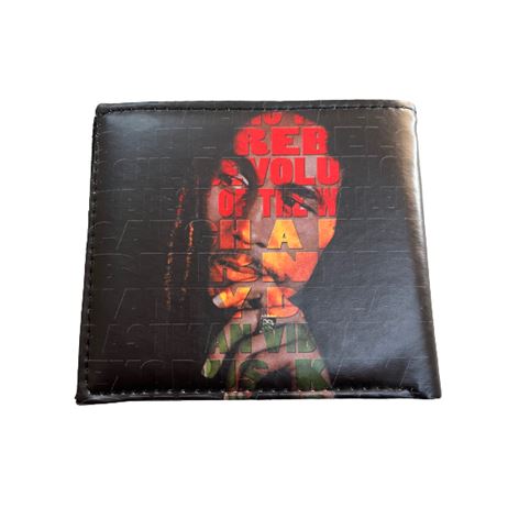 Πορτοφόλι με γραφικά εμπρός- πίσω ποιοτικό για τους fun του BOB MARLEY πελάτες, διαθέτει 2 εσωτερικές θήκες για χαρτονομίσματα 1 με φερμουάρ, 1 εσωτερική διαφανής θήκη για φωτογραφία,1 θήκη με φερμουάρ για κέρματα,4 εσωτερικές θήκες για κάρτες-δίπλωμα κλπ.