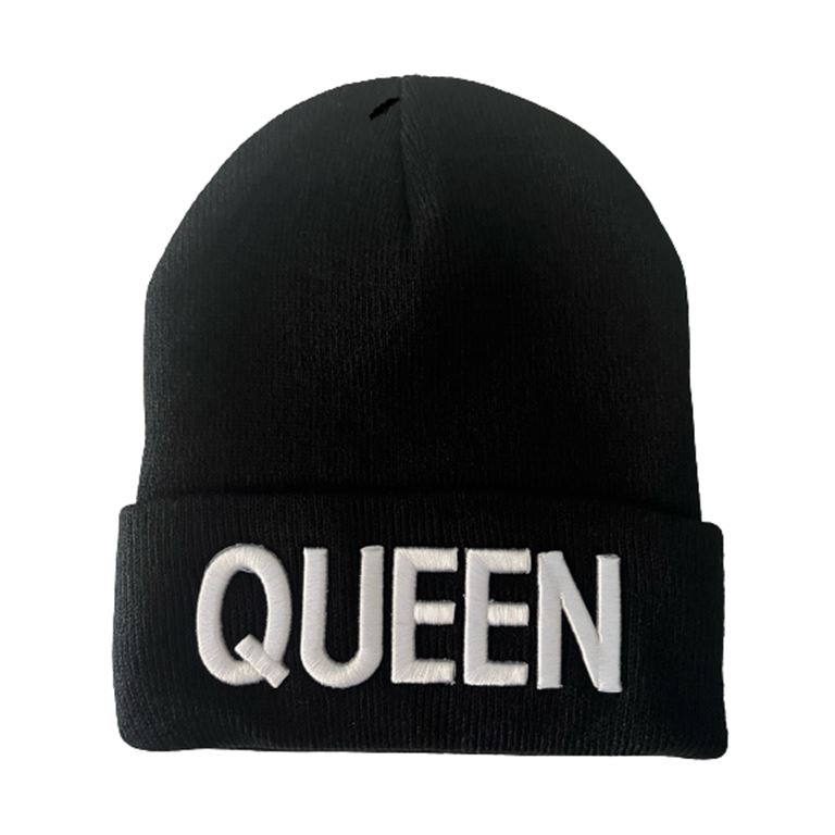 Σκούφος μαύρος πλεκτός 100% ακρυλικός με ραφτό λογότυπο QUEEN αναδιπλούμενος,άνετος εφαρμόζει τέλεια πάνω σας και είναι πολύ ζεστός.