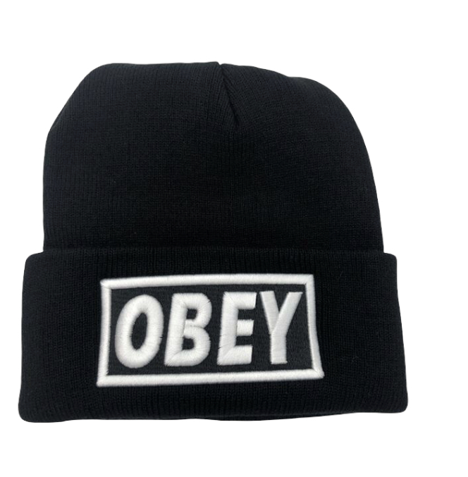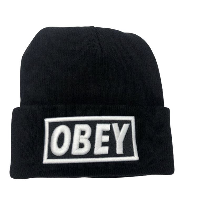 Σκούφος πλεκτός χρώματος μαύρο 100% ακρυλικός με ραφτό λογότυπο μαύρο OBEY αναδιπλούμενος,άνετος εφαρμόζει τέλεια πάνω σας και είναι πολύ ζεστός.