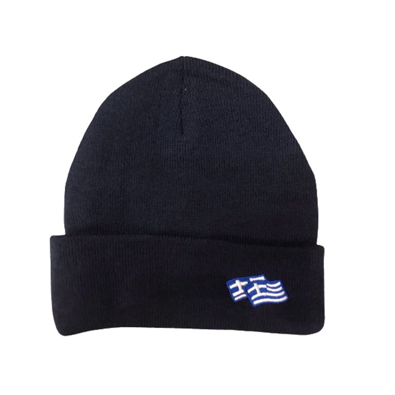 Σκούφος μπλε πλεκτός 100% ακρυλικός με ραφτό λογότυπο την Ελληνική σημαία αναδιπλούμενος,άνετος εφαρμόζει τέλεια πάνω σας και είναι πολύ ζεστός.