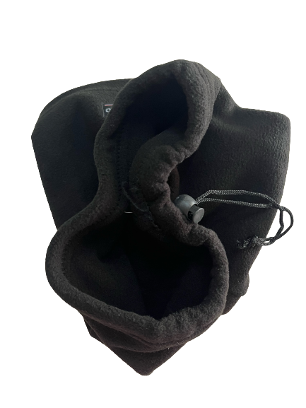 Λαιμουδιέρα fleece χρώματος μαύρο η οποία προστατεύει το λαιμό σας και το πρόσωπο από αντίξοες συνθήκες, το κρύο, τον αέρα και την βροχή.Με ρυθμιζόμενο κορδόνι το οποίο την μετατρέπει σε σκούφο.