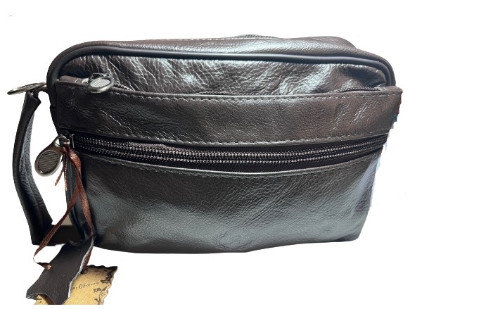 Δερμάτινο ανδρικό τσαντάκι χειρός (100% γνήσιο δέρμα cowhide leather) σε καφέ χρώμα, ευρύχωρο κατάλληλο για μεταφορά εγγράφων και χρημάτων, πλήρως φοδραρισμένο εσωτερικά.