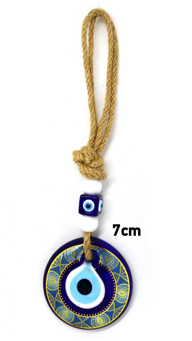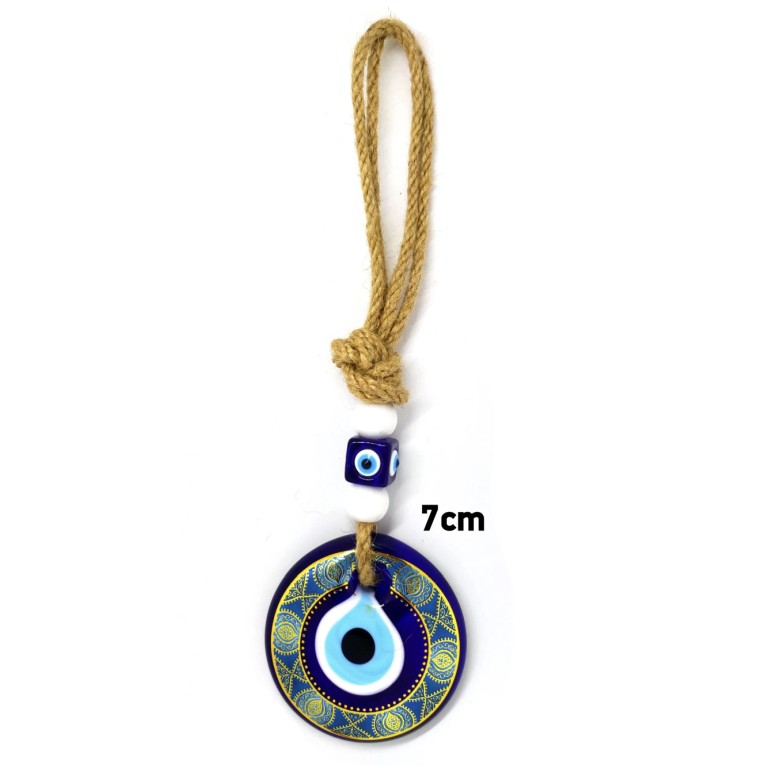 Μάτι-γούρι γυάλινο με σχοινί και 2 λευκές πέτρες (7cm) 7,00 €