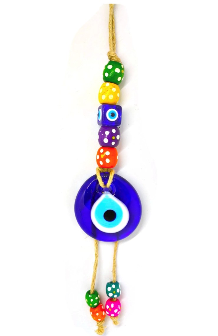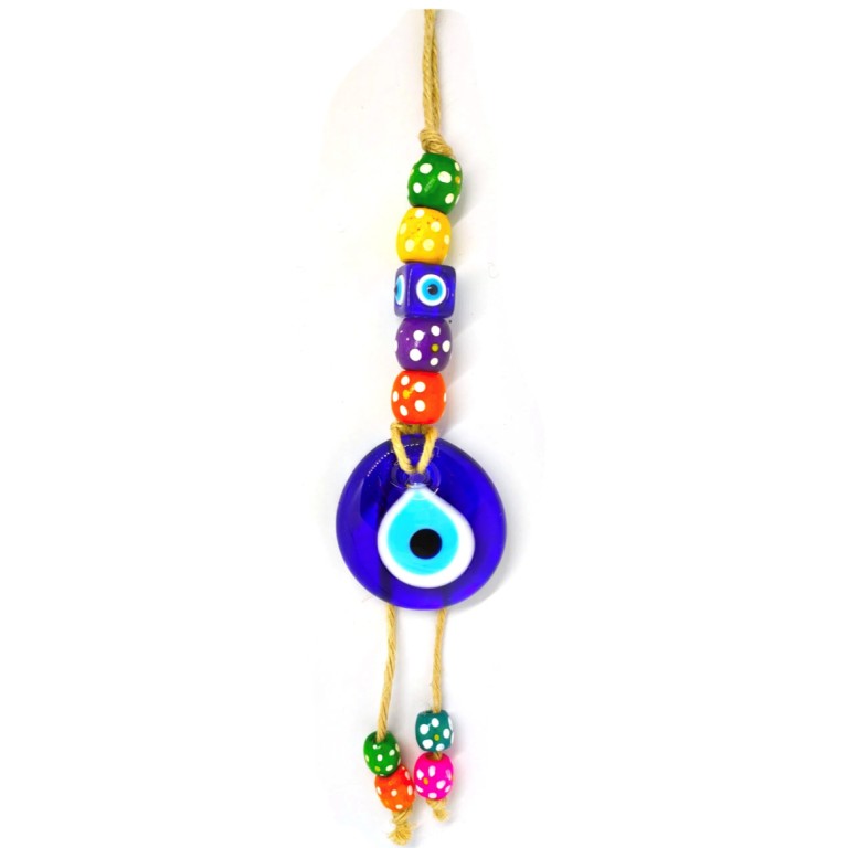 Μάτι-γούρι γυάλινο κρεμαστό με πλεκτό σχοινί και αμφορέα πολύχρωμο 8,00 €