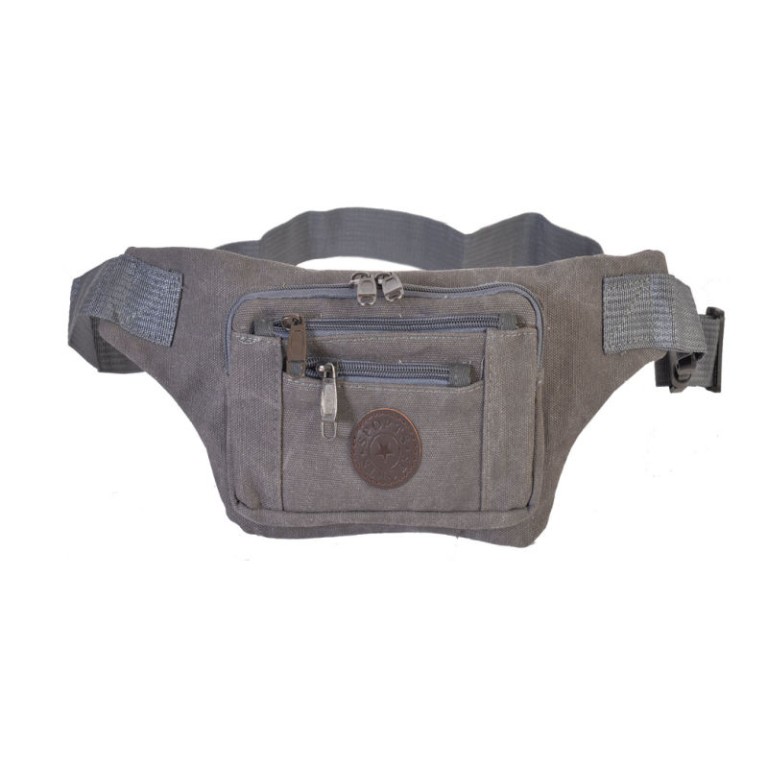 Ανδρικό τσαντάκι μέσης canvas χρώματος γκρι ,εξαιρετικής ποιότητος,ανθεκτικό με διπλές ραφές, πλήρως φοδραρισμένο με ρυθμιζόμενο ιμάντα προσαρμογής στη μέση,άνετο με τέλεια εφαρμογή πάνω σας. Διαστάσεις M x Y x Π (cm) 35 x 14 x 2,5 Το τσαντάκι διαθέτει 1 κεντρική θήκη με φερμουάρ, και διπλό zipper puller , 2 θήκες με φερμουάρ μπροστά