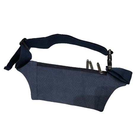 Unisex τσαντάκι μέσης Canvas χρώματος μπλε, με ρυθμιζόμενο ιμάντα προσαρμογής στη μέση άνετο με τέλεια εφαρμογή πάνω σας κατάλληλο για μεταφορά χρημάτων μπορεί να φορεθεί μέσα από τα ρούχα. Διαστάσεις M x Y x Π (cm) 31 x 11,5 x 1 Το τσαντάκι διαθέτει 1 κεντρική θήκη με φερμουάρ, και διπλό zipper puller , 1 θήκη με φερμουάρ μπροστά, 1 θήκη στο πίσω μέρος.