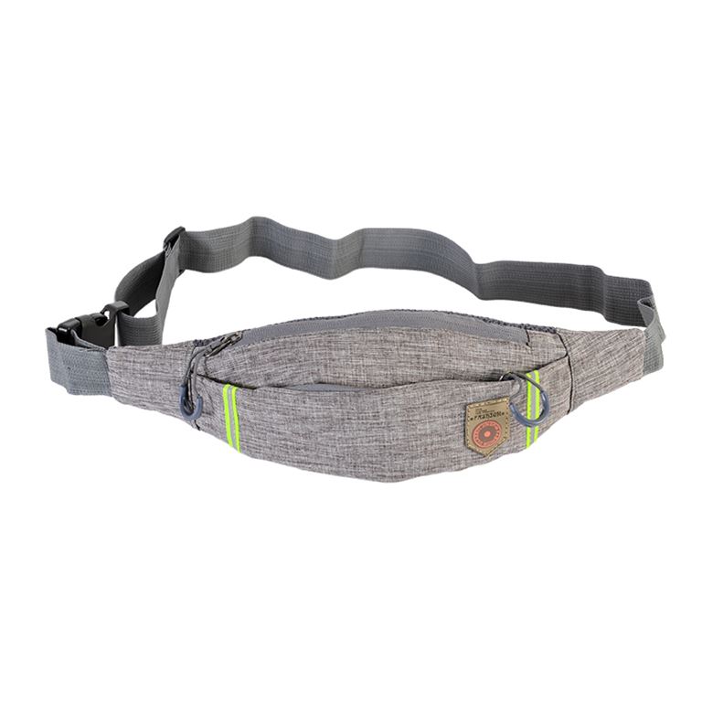 Unisex τσαντάκι μέσης υφασμάτινο χρώματος γκρι με διπλές ραφές, πλήρως φοδραρισμένο, με ρυθμιζόμενο ιμάντα προσαρμογής στη μέση άνετο με τέλεια εφαρμογή πάνω σας . Διαστάσεις M x Y x Π (cm) 35 x 7,5 x 12 Το τσαντάκι διαθέτει 1 κεντρική θήκη με φερμουάρ,1 θήκη με φερμουάρ μπροστά.