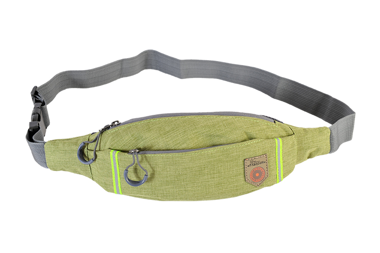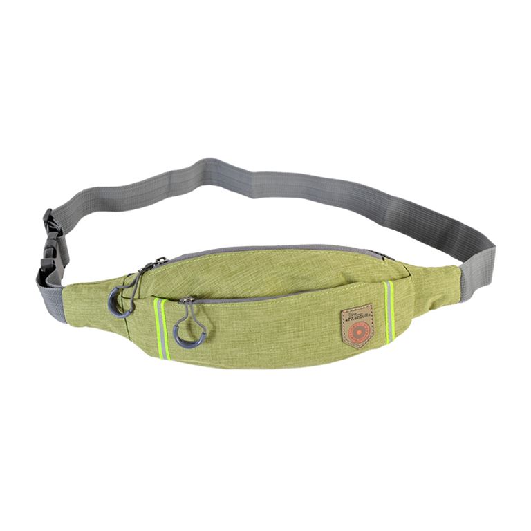 Unisex τσαντάκι μέσης υφασμάτινο χρώματος πράσινο με διπλές ραφές, πλήρως φοδραρισμένο, με ρυθμιζόμενο ιμάντα προσαρμογής στη μέση άνετο με τέλεια εφαρμογή πάνω σας . Διαστάσεις M x Y x Π (cm) 35 x 7,5 x 12 Το τσαντάκι διαθέτει 1 κεντρική θήκη με φερμουάρ,1 θήκη με φερμουάρ μπροστά.