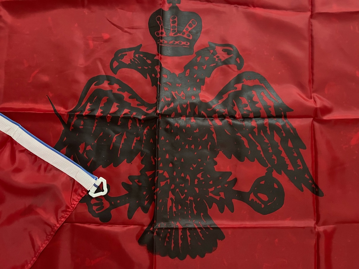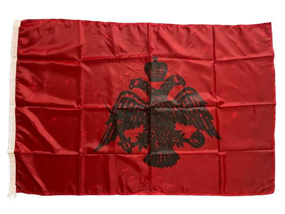 Σημαία Κόκκινη Βυζαντίου Πολεμική 100x70cm από ανθεκτικό πολυεστερικό ύφασμα, ανεξίτηλα χρώματα με ανθεκτικούς πλαστικούς κρίκους ,φτιαγμένη στο χέρι από μικρή Ελληνική βιοτεχνία.