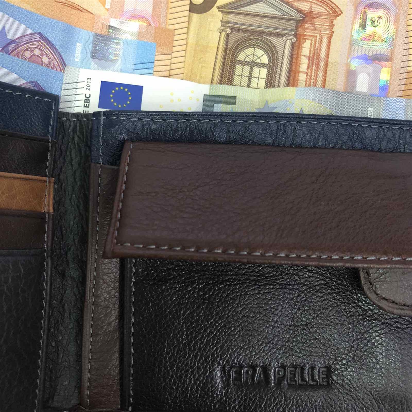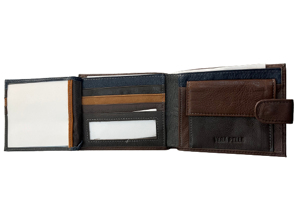 Δερμάτινο ανδρικό πορτοφόλι, υλικό Genuine leather ,εξαιρετικής ποιότητας μεγάλης αντοχής διαστάσεις μήκος (cm) 12,5 ύψος 10 πλάτος 3 ,Το πορτοφόλι διαθέτει 1 θήκη ταυτότητας,1, 1 θήκη για κέρματα,9 θήκες για κάρτες, 1 θήκη για χαρτονομίσματα 1 εσωτερική θήκη με φερμουάρ.Στο εσωτερικό του πορτοφολιού υπάρχει και διχρωμία.