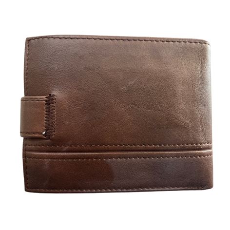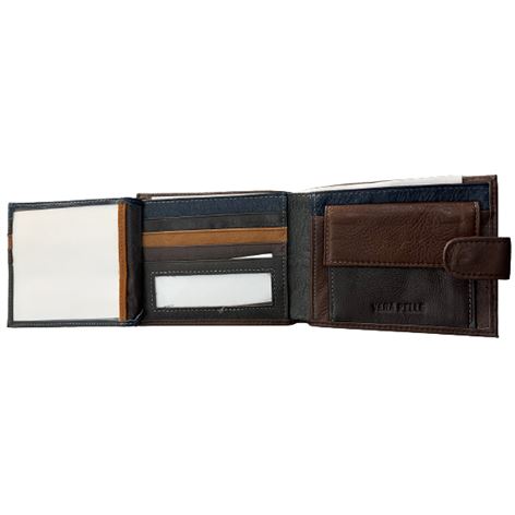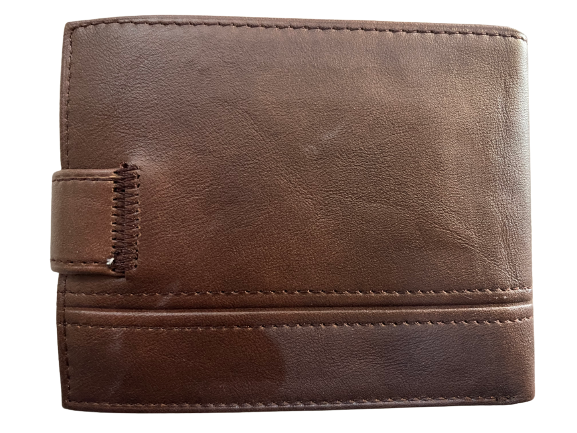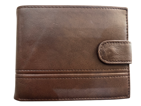 Δερμάτινο ανδρικό πορτοφόλι καφέ με κούμπωμα και 2πλο καφέ γαζί