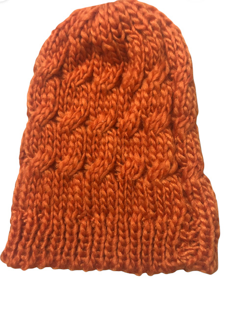 Σκούφος πλεκτός πορτοκαλί χρώμα.