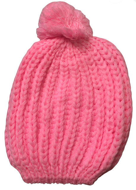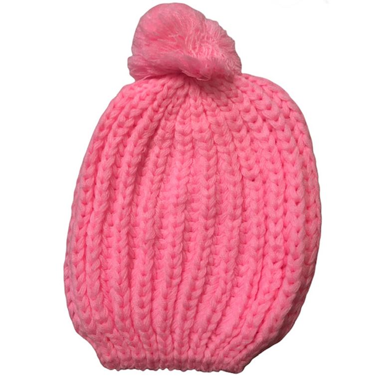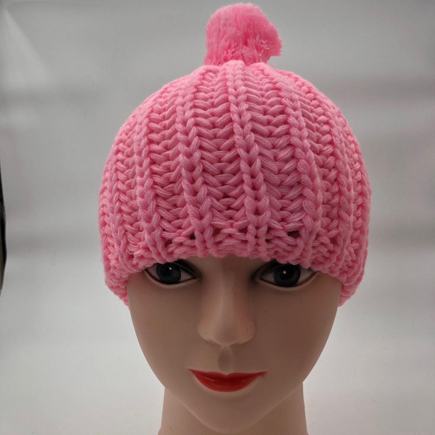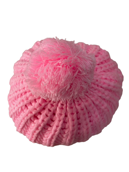 Σκουφάκι πλεκτό ροζ χρώμα με φούντα για τις κρύες ημέρες του χειμώνα.