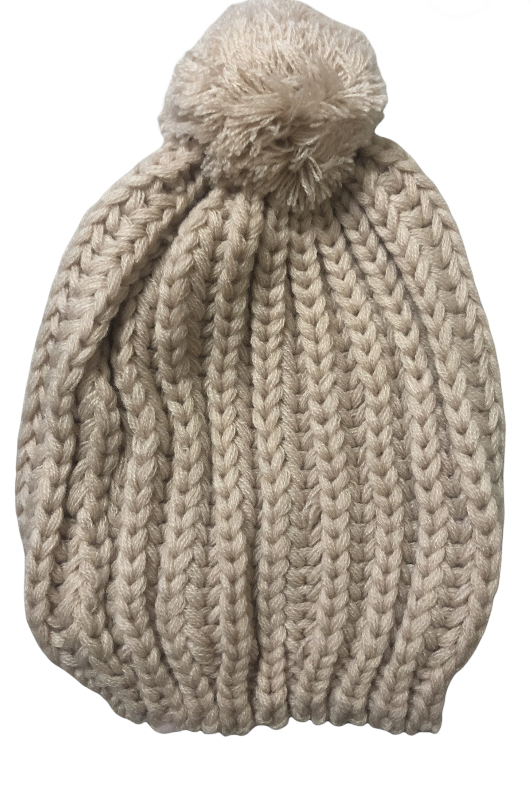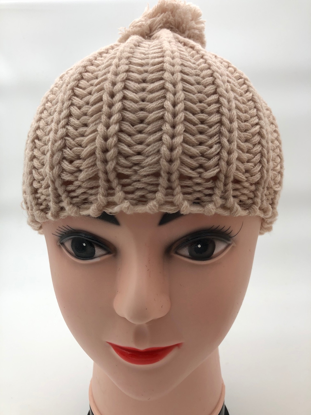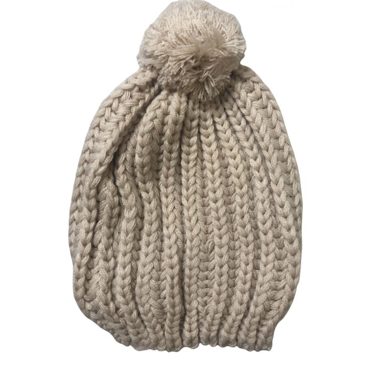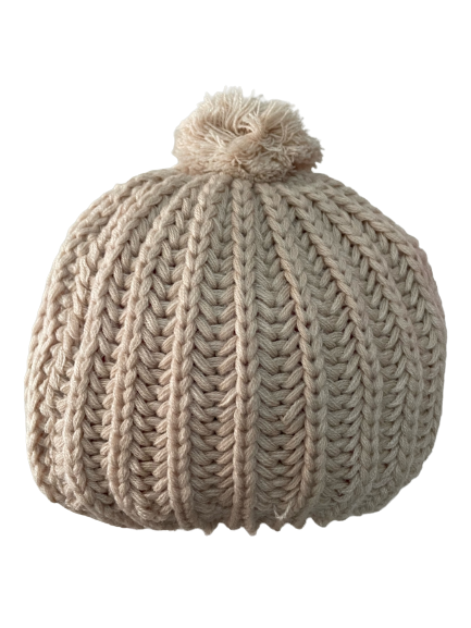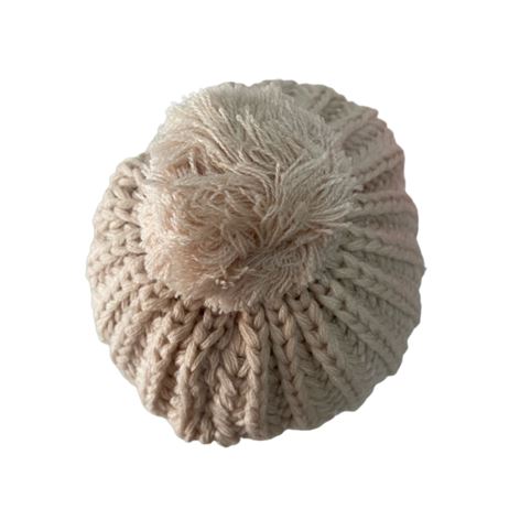 Σκουφάκι πλεκτό με φούντα εκρού χρώμα για τις κρύες ημέρες του χειμώνα.