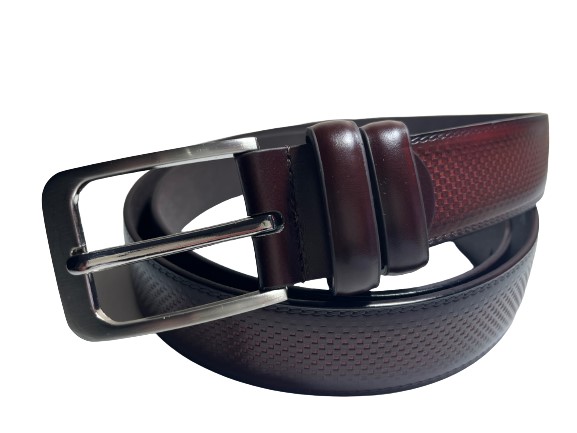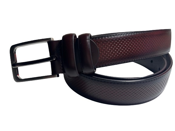 Ανδρική δερμάτινη ζώνη από αναγεννημένο δέρμα με κλασική αγκράφα και ανάγλυφη υφή.