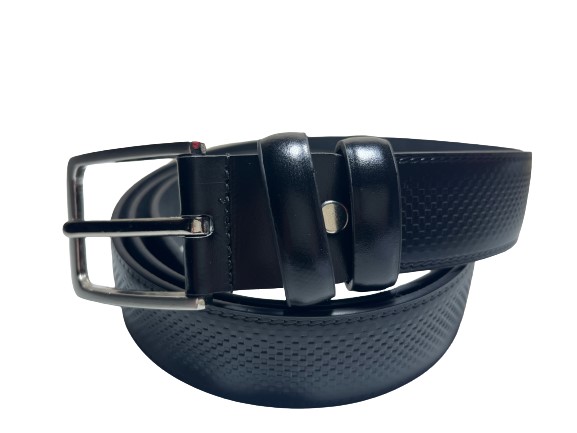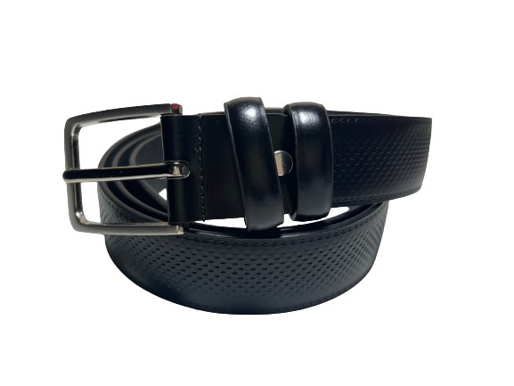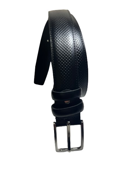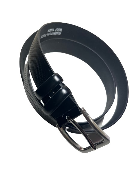 Ανδρική δερμάτινη ζώνη από αναγεννημένο δέρμα με κλασική αγκράφα και ανάγλυφη υφή.