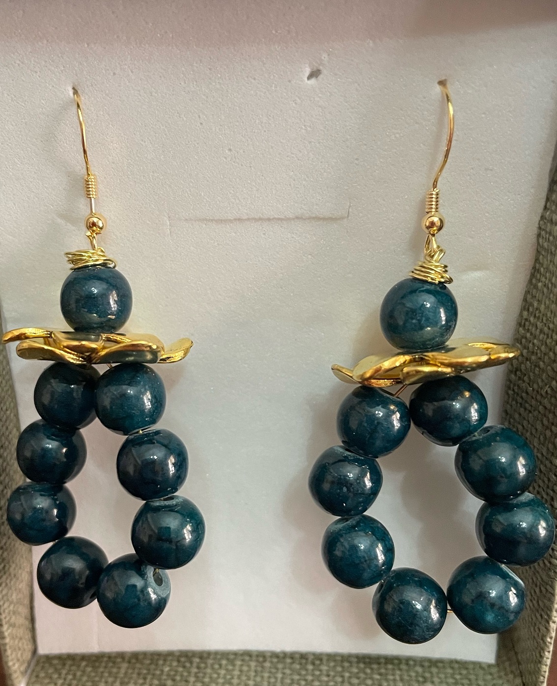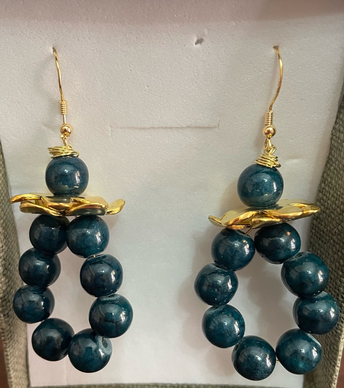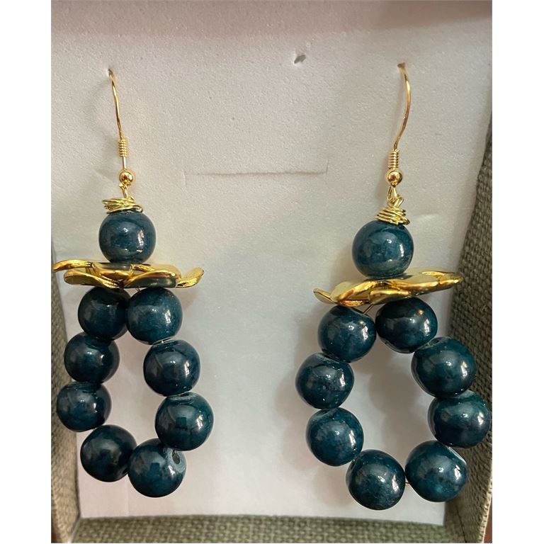 Σκουλαρίκια σετ 2 τεμάχια με ασημένιο 925 επιχρυσωμένο κρίκο για το αυτί με σφραγίδα γνησιότητας και με ημιπολύτιμους λίθους (Χαολίτη),λέγεται ότι αυτό το πετράδι προσφέρει σοφία, Υπομονή, Κατανόηση, Ηρεμία. Πλούτος και Αφθονία στην Πνευματική και Ψυχική μορφή τους.