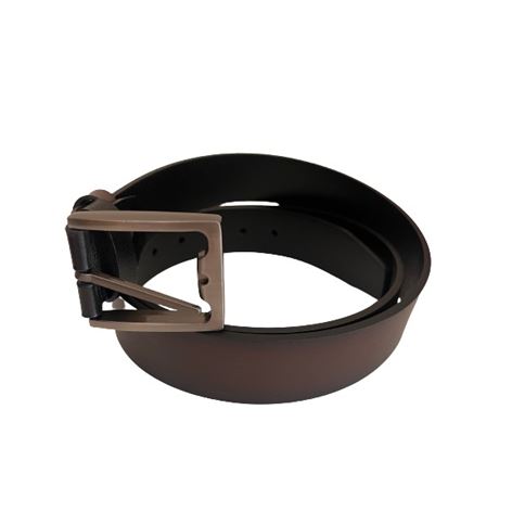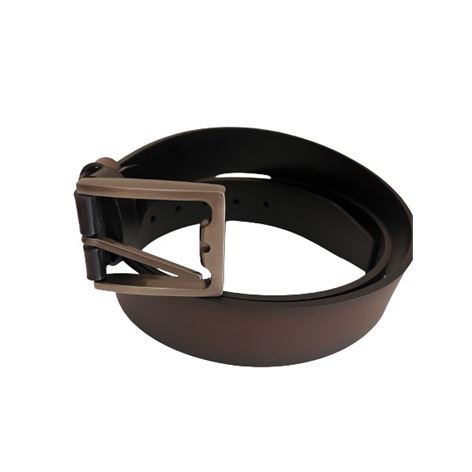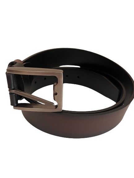 Ανδρική ζώνη από ατόφιο αναγεννημένο δέρμα διπλής όψης Μαύρο και Καφέ χρώμα για να φοριέται με όλα τα ντυσίματα και από τις δυο πλευρές, η αγκράφα είναι μασίφ μέταλλο σε χρώμα ματ με μία πολύ εύκολη κίνηση γυρνώντας την ακίδα επιλέγεται τη πλευρά με το χρώμα που προτιμάτε.