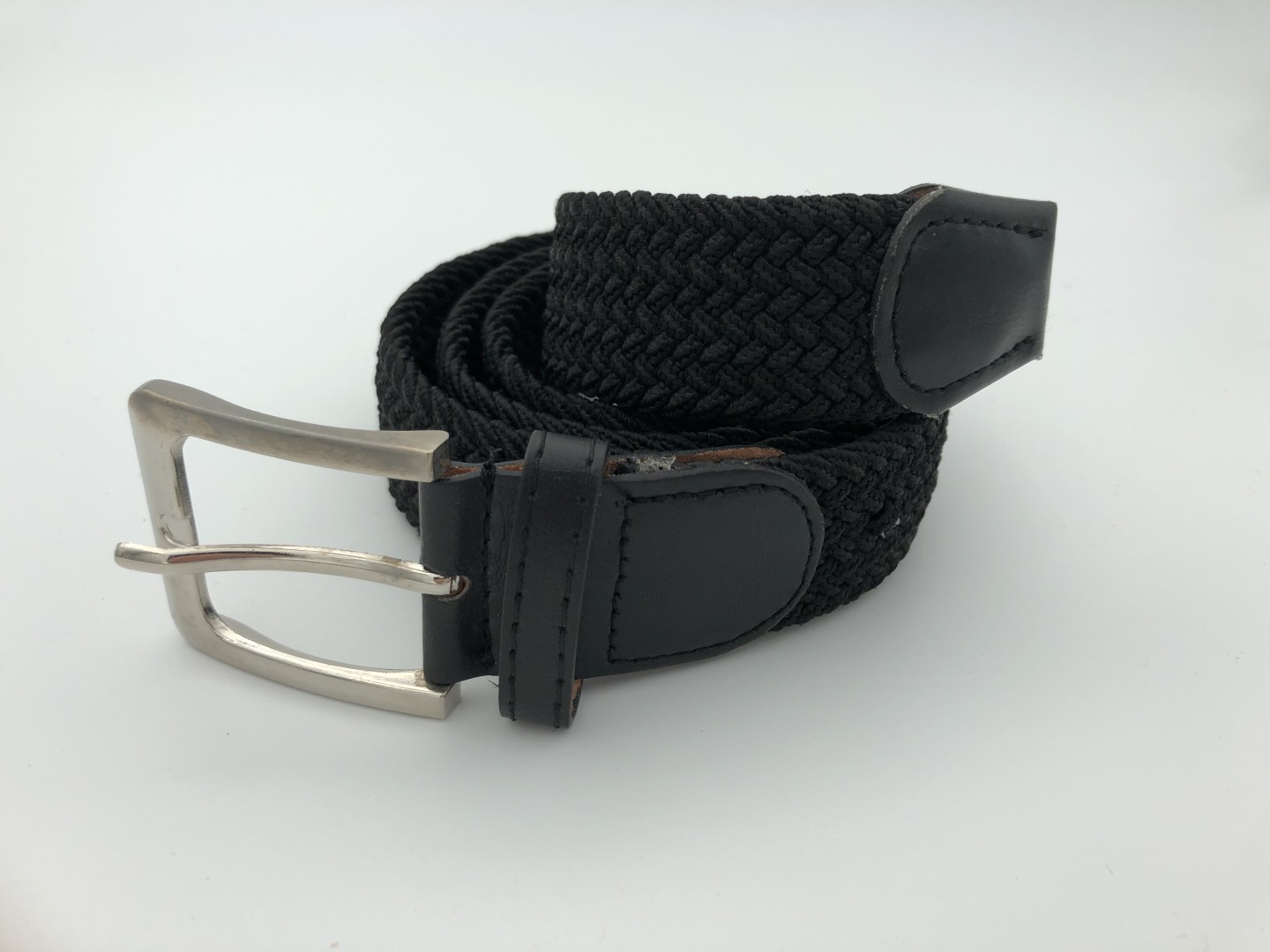 Elastic knitted belt from selected fabric, a necessary accessory for you. It has no holes and tightens as much as you want, with a metal square buckle and leather on the clasp. Leather - fabric composition.
